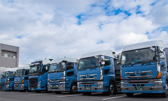 自社で保有する約80台の多様な車両(軽~大型、冷凍車含む)により柔軟な対応が可能。